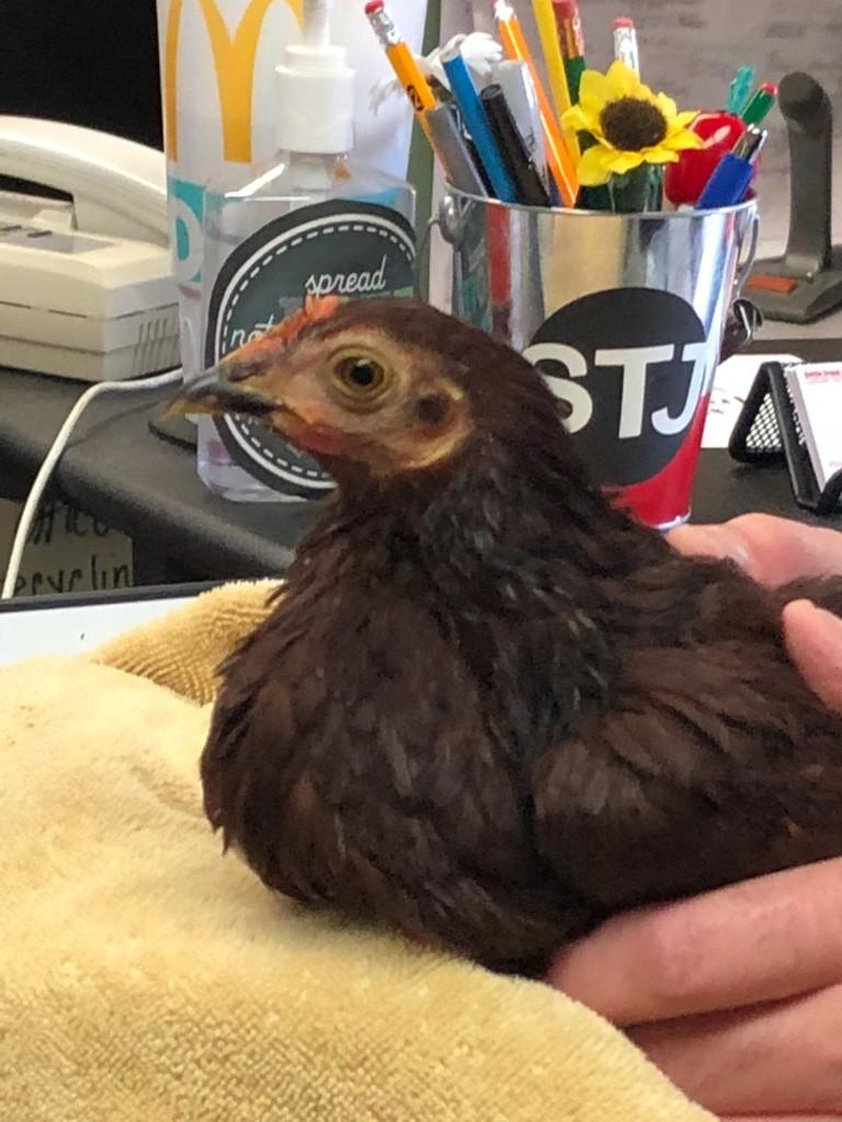 “I’ve had the chickens for a couple of months now, and it was just the right time,” Fr. Chris said. “On a whim, I brought Mrs. Myers over.”