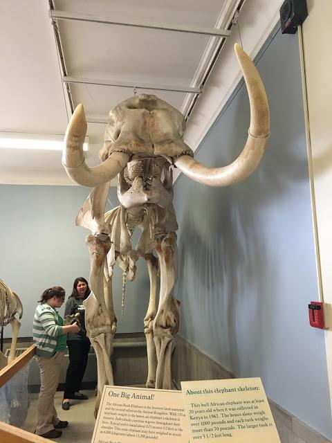 Ellie comparing J.A.M.E.S. to African Elephant skeleton at MSU