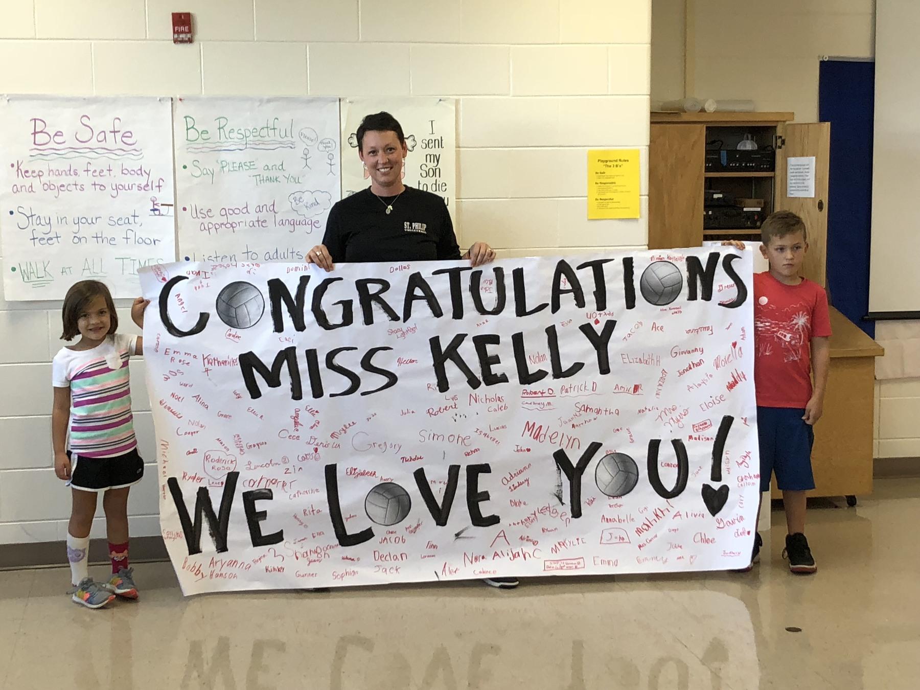 Mrs. Winkler helped St. Joe students create this sign for Mrs. Fransisco to celebrate her induction into the St. Philip Athletic Hall of Fame.