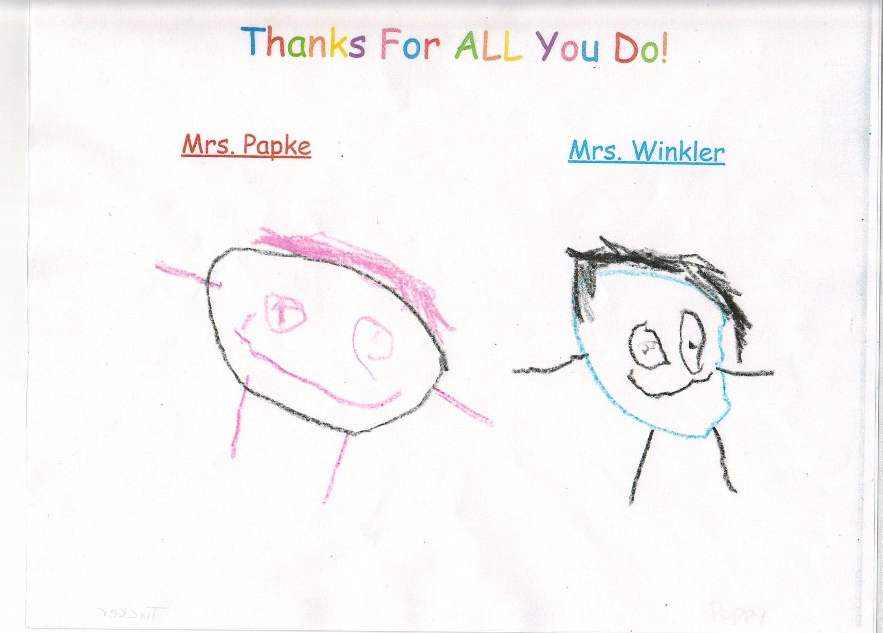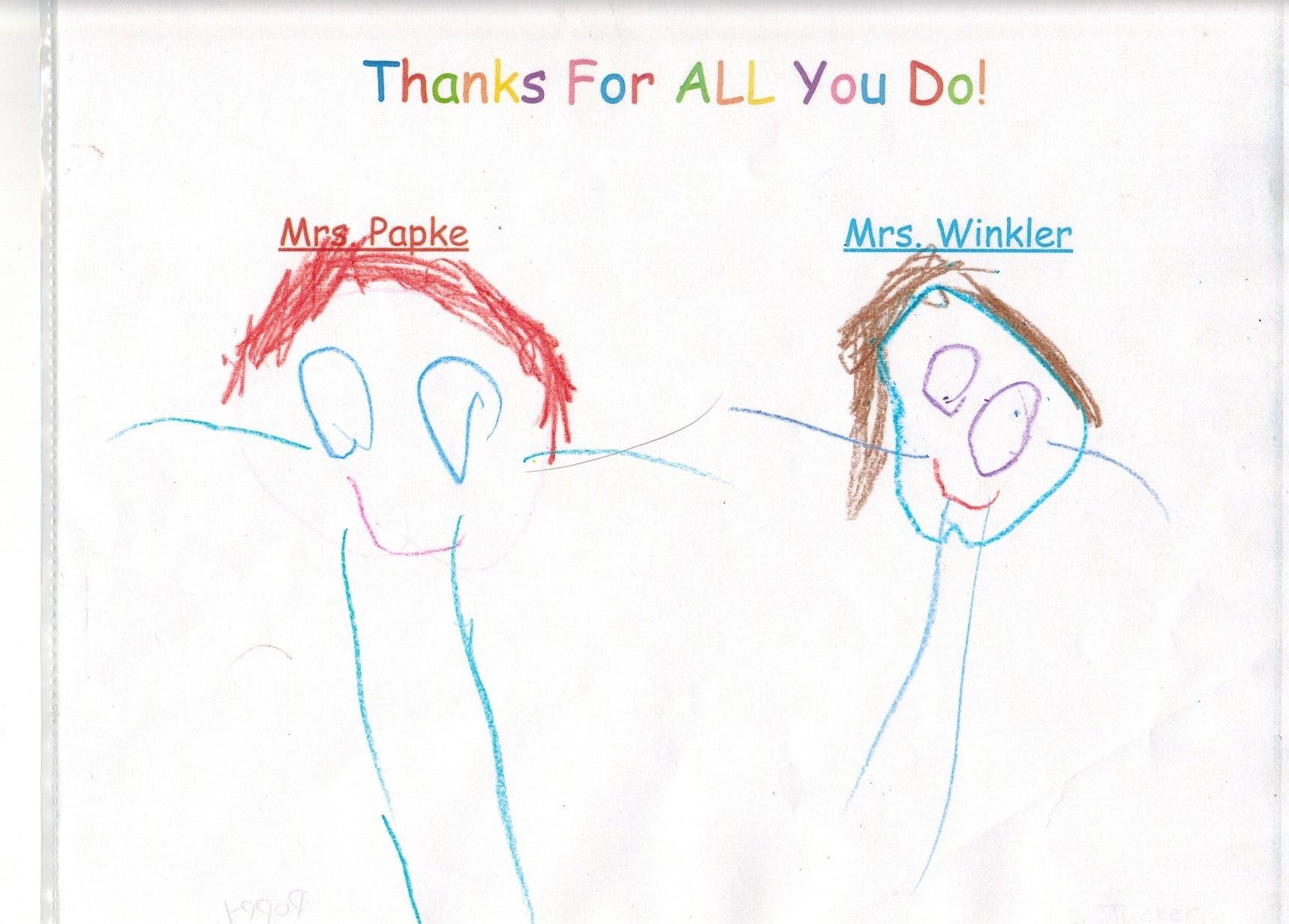Some of our tiniest Tigers drew pictures of Mrs. Winkler and Mrs. Papke, which are easily worth a thousand words. Enjoy!